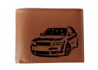 Pánská peněženka z kravské kůže hnědé barvy s vypáleným motivem Audi A4 B7 na přední straně