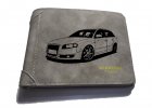 Pánská peněženka z kravské kůže hnědé (koňakové) barvy s motivem Audi A6 4F na přední straně peněženky