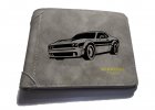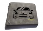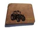 Pánská peněženka z kravské kůže hnědé barvy s vypáleným motivem Traktor na přední straně