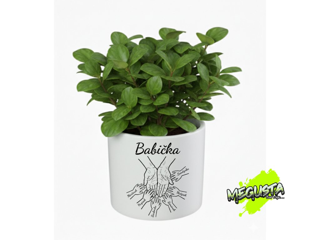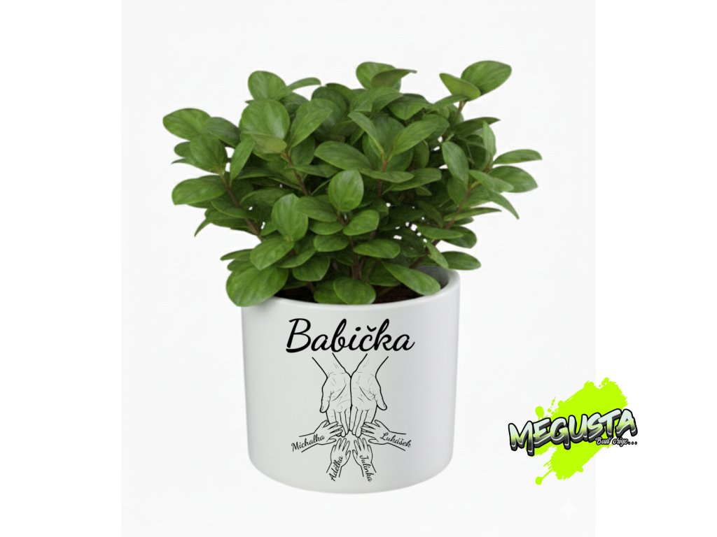 - Personalizace jménem: Každá ruka vnoučete je popsána jeho vlastním jménem, což květináč povyšuje z obyčejného předmětu na skutečný rodinný poklad.