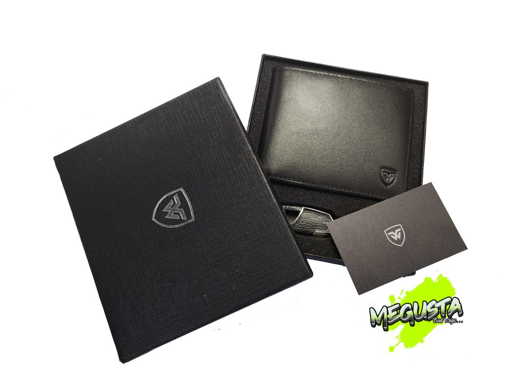 - Peněženka je v černé dárkové krabičce spolu s klíčenkou a dárkovou kartičkou