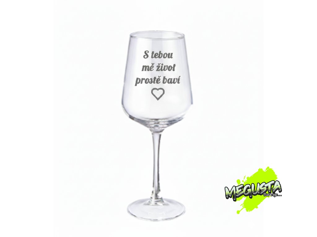 Sklenice na víno 430 ml s gravírováním - S tebou mě život prostě baví