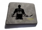 Pánska tmavě šedá peněženka z eko kůže s motivem hokejisty s vámi zvoleným jménem a číslem