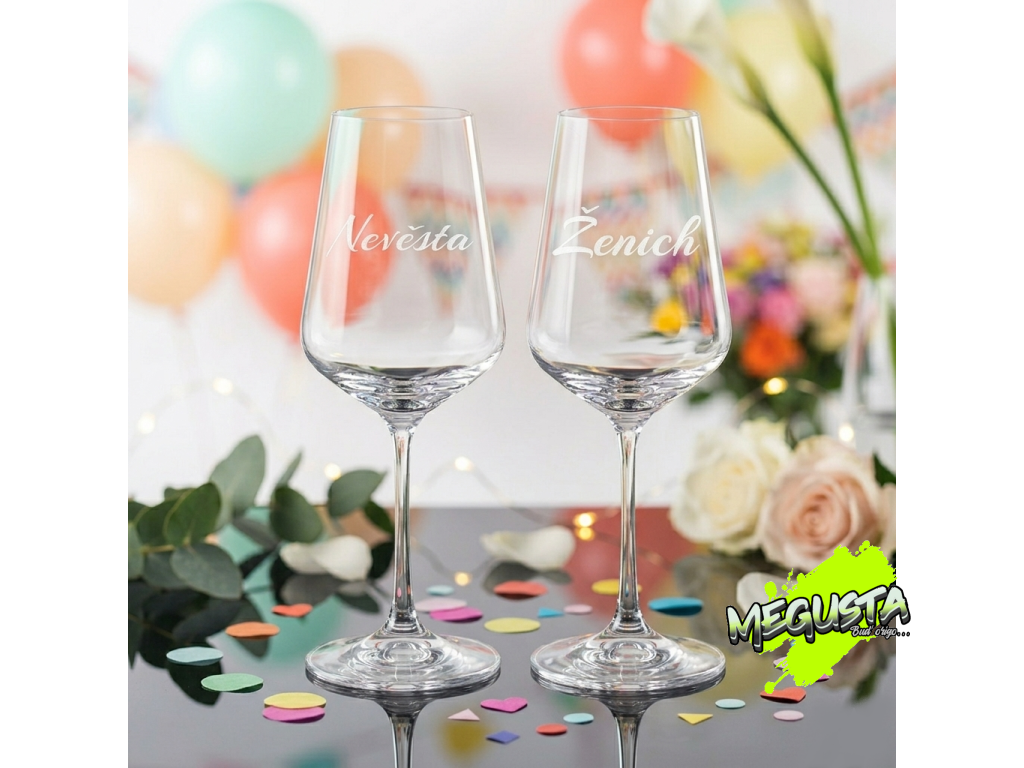Svatební sklenice na víno Crystalex s gravírováním – Jmenovka i dárek v jednom