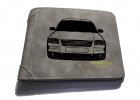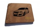 Pánská peněženka z kravské kůže hnědé barvy s vypáleným motivem VW Passat B5.5 na přední straně