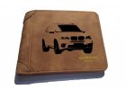 Pánská peněženka z kravské kůže hnědé barvy s vypáleným motivem BMW X5 E53 na přední straně